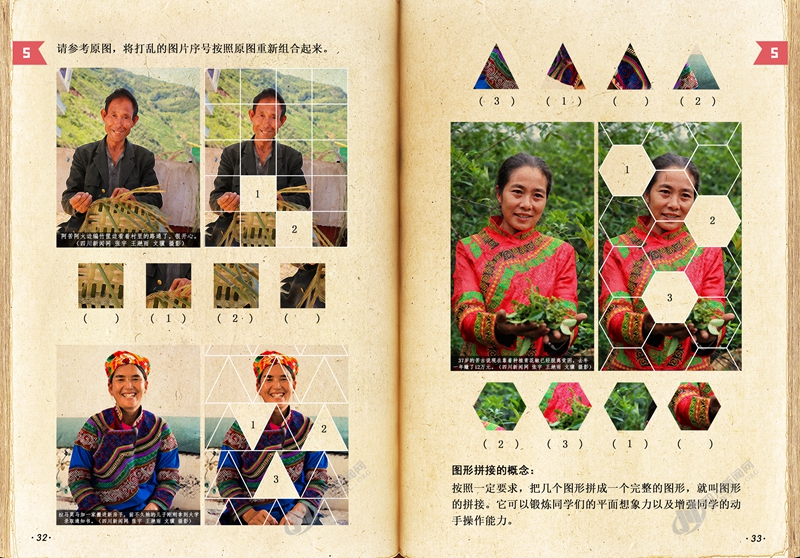 本节数学课,我们将通过了解掌握图形拼接概念,把走入新生活群众的笑脸拼凑完整,除了基础练习,还设置了进阶版练习,在图形拼接的乐趣中,进一步感受脱贫攻坚带来的实实在在的成效。