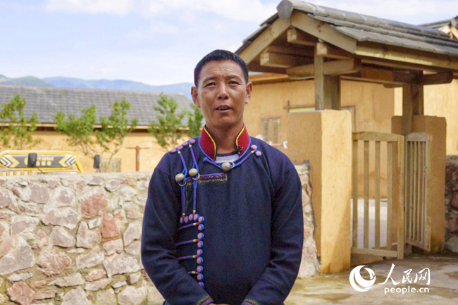 吉好也求在新房院里接受采访。人民网 邸敬元摄