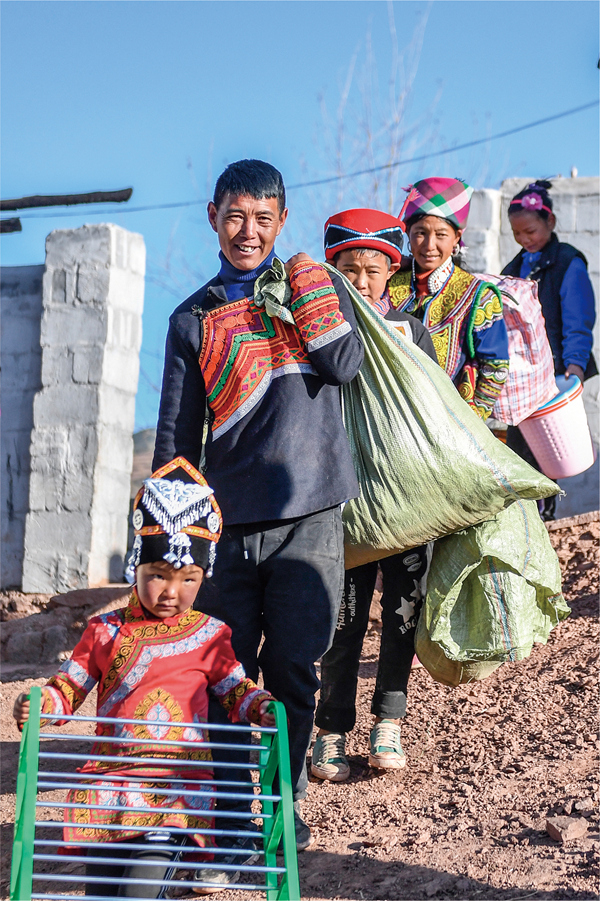 2019年2月,吉好也求和家人带着行李前往新家。凉山州委宣传部供图,阿克鸠射摄