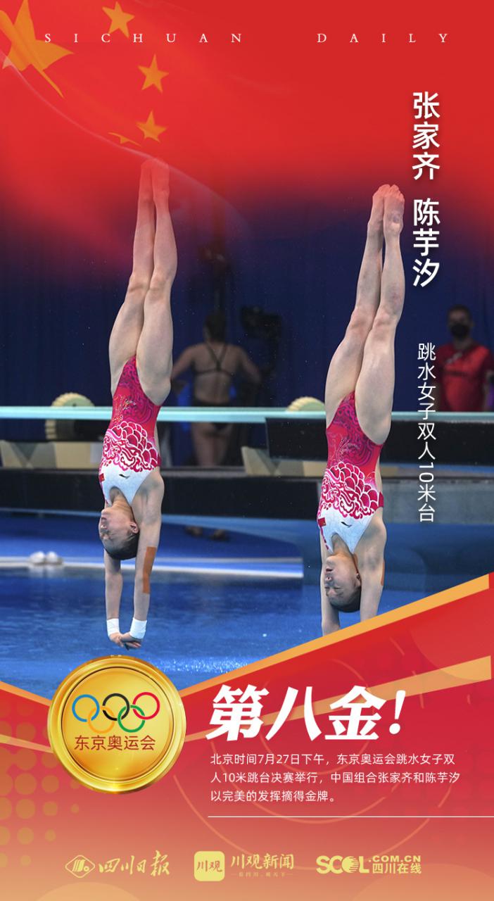 祝贺!7月27日,中国组合陈芋汐/张家齐获得东京奥运会女子双人10米台金牌,中国跳水队实现这一项目的奥运六连冠!这是中国代表团在此次奥运会中获得的第8枚金牌。