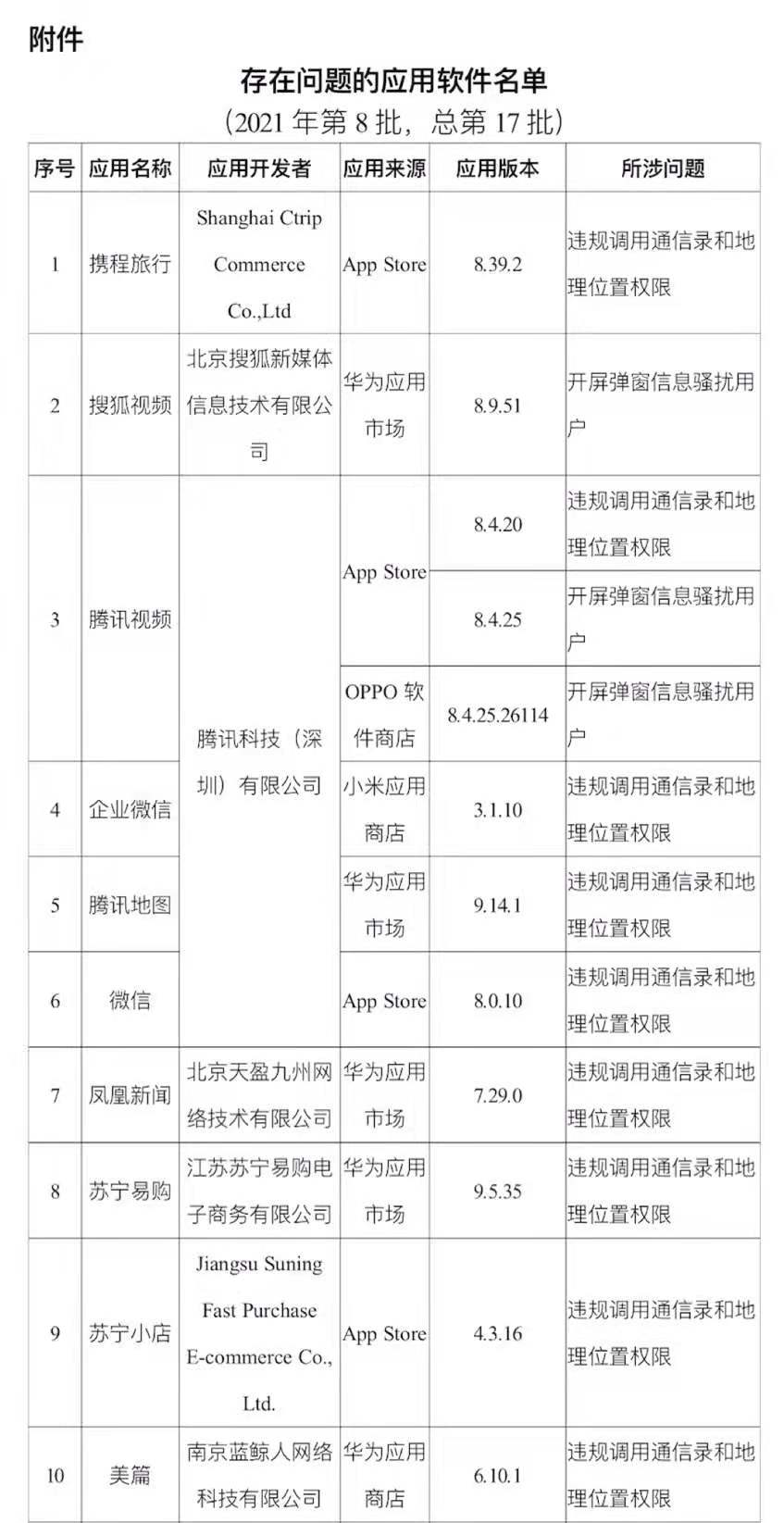 时间:2021-08-18 16:25:37 来源:川观新闻近期,工信部针对用户反映强烈的APP违规调用通信录、位置信息以及开屏弹窗骚扰用户等三方面突出问题,组织开展了“回头看”,共发现43款APP(详见附件)仍存在问题整改不彻底、技术手段对抗、同一问题在不同地域整改不一致的情况。上述APP应在8月25日前完成整改,逾期不整改或整改不到位的,我部将依法依规进行处置。