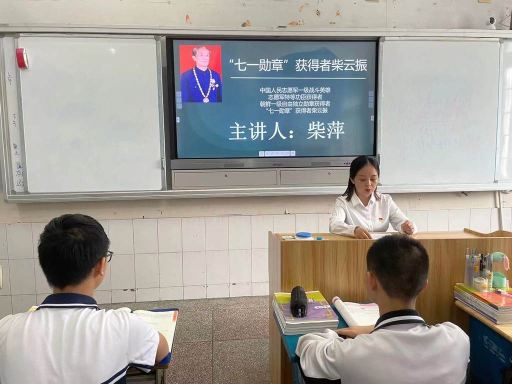 同一时间,一位特殊的演讲嘉宾走上广安市岳池中学的高二6班的讲台,她便是“七一勋章”获得者柴云振的长孙女柴萍。通过讲述柴云振“钢铁战士英勇杀凶”、“复员军人深藏功与名”、“人民英雄言传身教”3件事,让学生走近平凡英雄,厚植爱国情怀。