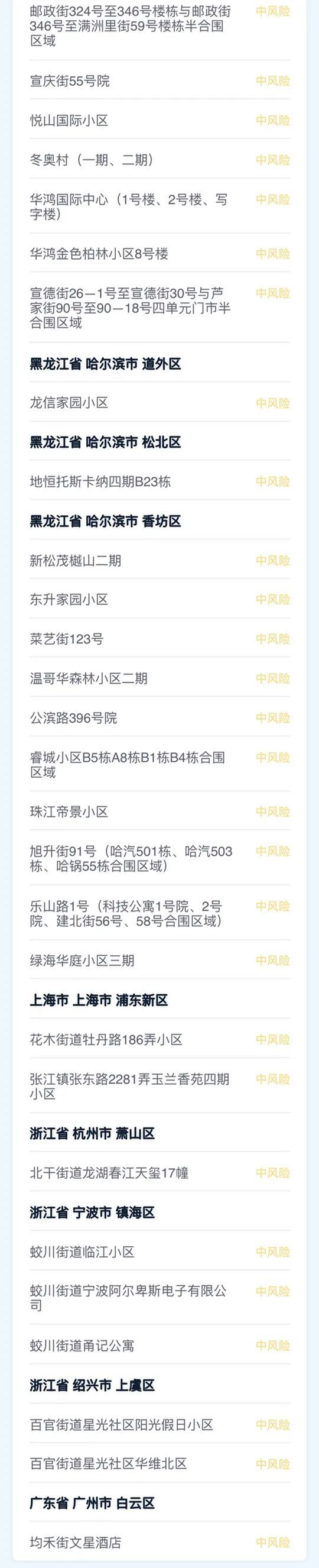 国内中高风险地区汇总表
