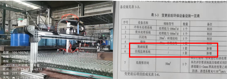 2021年12月19日,检查发现,内江市蓝洋玻璃制品有限公司未按照环评要求配套建设脱硝装置和在线监测系统,主体工程即投入使用。该公司的行为违反了《建设项目环境保护管理条例》第十五条“建设项目需要配套建设的环境保护设施,必须与主体工程同时设计、同时施工、同时投产使用”的规定。案件已移交属地调查处理。