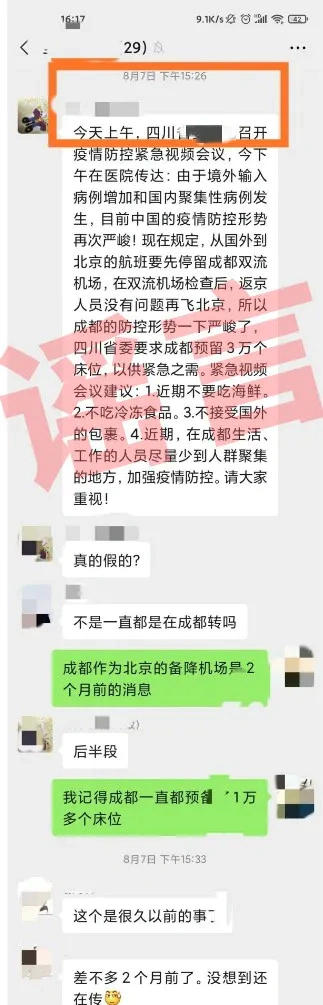 时间:2022-01-04 10:08:28 来源:四川新闻网1月3日,一则消息又在网上流传。这则消息称,由于境外输入病例增加和国内聚集性防控形势再次严峻,从国外到北京的航班要先停留成都双流机场再飞北京;四川要求成都紧急预留3万个床位的消息……到底是真是伪?一查询,是2020年的谣言。