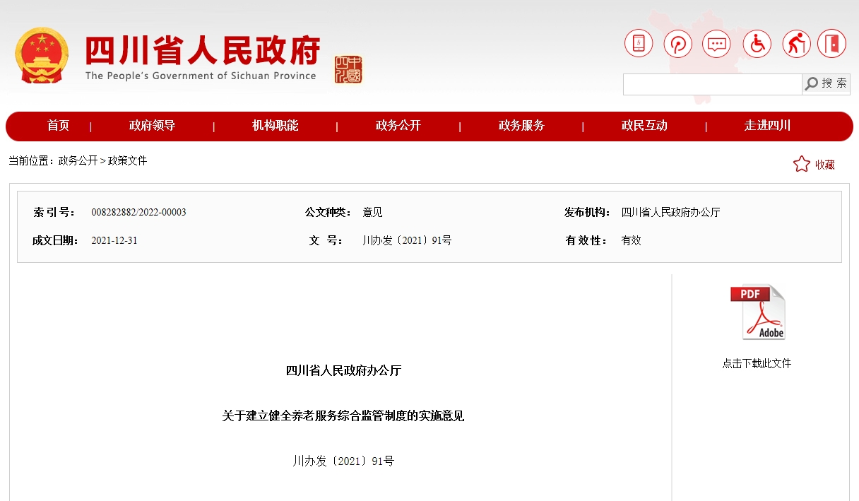 四川出台十七条措施,建立健全养老服务综合监管制度
