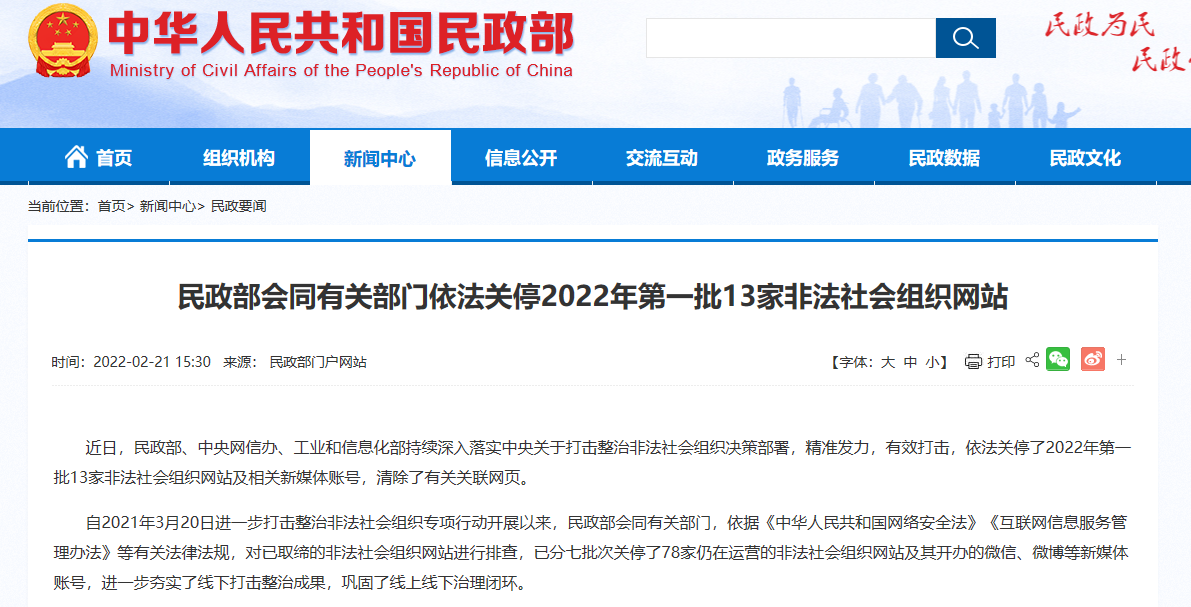 注意!2022年第一批非法社会组织网站被关停