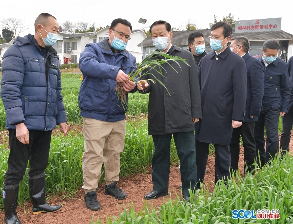 一年之计在于春,巴蜀大地一派春耕生产的忙碌景象。调研中,彭清华每到一地都听取市县春耕备耕工作情况汇报,对青神县将5000亩草坪退还为良田、威远县在果园推广粮经复合种植等做法给予肯定。在仁寿县珠嘉镇棚村村,彭清华实地察看小麦等粮食作物长势,与正在田间耕作管护的农技人员和村民亲切交流,询问培育本地种质资源、实施“麦玉豆”三熟轮作种植技术等情况。他指出,抓好粮食等重要农产品生产供给,是今年“三农”工作的头等大事。要落实“长牙齿”的耕地保护硬措施,持续开展高标准农田建设,鼓励各地加强粮食生产,因地制宜推广新品种新技术,不断提高粮食综合生产能力。要做好种子、化肥、农药、农机具等物资准备,保证春耕生产需要。借助农村两项改革,青神县青竹街道兰沟村盘活用好村闲置资产发展旅游业,村集体经济年收入从1.3万元增长至80.1万元;威远县无花果博览园建成主题鲜明的农旅融合综合体,带农增收作用明显。彭清华指出,推动两项改革“后半篇”走深走实,既要做强产业支撑,又要把握人口变化趋势,科学编制乡村国土空间规划,培育壮大中心镇(村),积极发展新型农村集体经济,优化资源配置、提升公共服务水平,更好满足人民群众对美好生活的新期待。