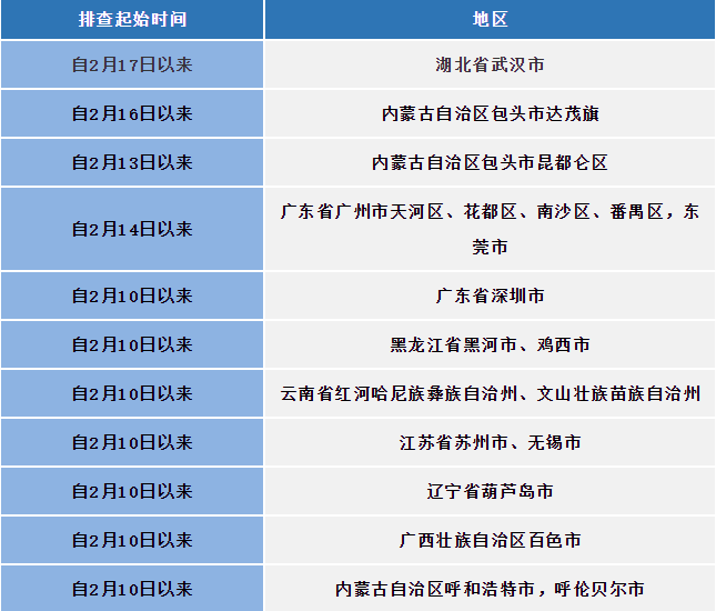 如果您近期有以下地区的旅居史,请第一时间向村(社区)、单位或入住酒店报备,配合做好各项疫情防控工作。