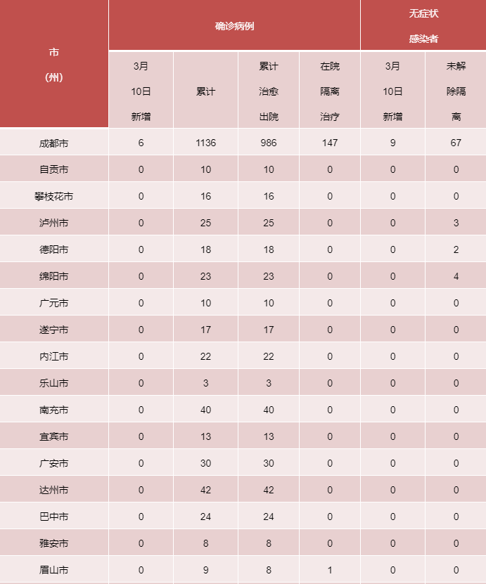 3月10日0-24时,全省新增无症状感染者9例,均为境外输入(在成都市):