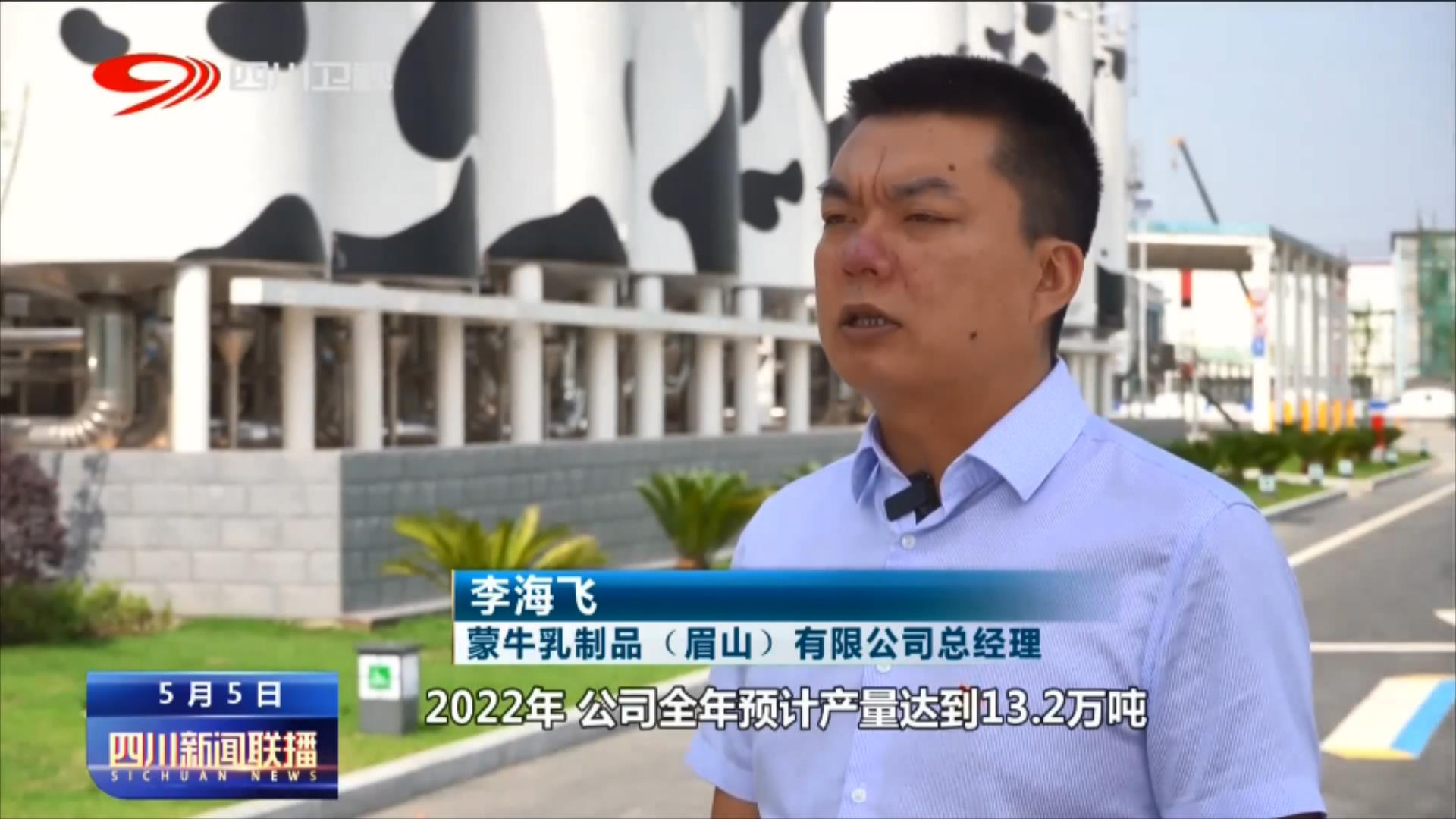 蒙牛乳制品(眉山)有限公司总经理 李海飞:2022年,公司年预计产量将达到13.2万吨,预计产值突破14亿元。