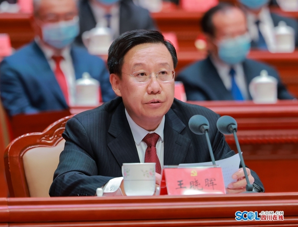 王晓晖指出,迈步新征程、谱写新篇章,必须坚持发展第一要务,坚定不移推动经济社会高质量发展。发展是解决一切问题的基础和关键,高质量发展是新发展阶段的主题。在历届省委的接续努力下,当前四川发展已经站在新的历史起点上,但发展不平衡不充分仍然是最突出的问题。要始终保持专注发展定力,紧扣立足新发展阶段、贯彻新发展理念、构建新发展格局、推动高质量发展,坚持稳中求进工作总基调,扎实抓好党代会作出的推动成渝地区双城经济圈建设、深入实施“一干多支、五区协同”“四向拓展、全域开放”战略部署等重大任务落实,全力以赴拼经济、搞建设,在保持全省经济质的稳步提升和量的合理增长上下功夫,努力跑出加速度、实现新跨越。要认真践行以人民为中心的发展思想,围绕“让人民群众过上好日子”,多谋富民之策、多办利民之事,千方百计惠民生、增福祉。要统筹发展和安全,坚决防范化解各类重大风险,推动四川现代化建设乘风破浪、行稳致远。