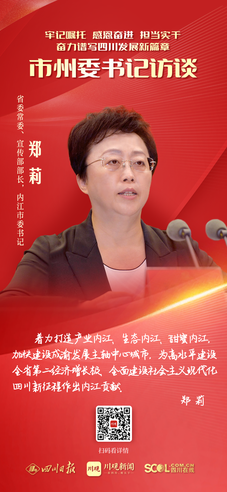记者专访了省委常委、宣传部部长,内江市委书记郑莉。