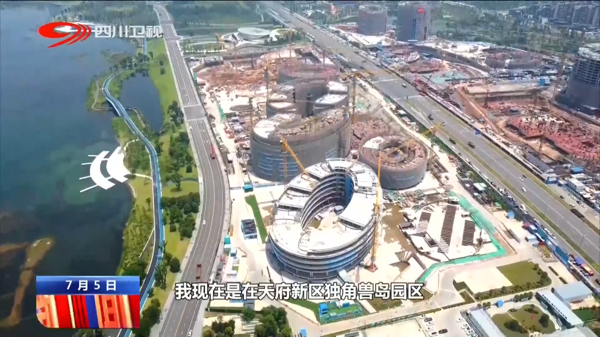 中建五局独角兽岛园区项目指挥长 张志:正在进行主体和(内部)装饰施工,项目制定各项保障措施,力争在今年10月份完成主体封顶。
