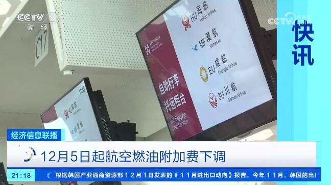 时间:2023-12-04 15:11:56 来源:人民网记者从中国民用航空局了解到,自2023年12月5日(出票日期)起,成人旅客800公里(含)以下航线每位旅客收取50元燃油附加费,800公里以上航线每位旅客收取90元燃油附加费。相较于调整前分别降低了10元和20元。
