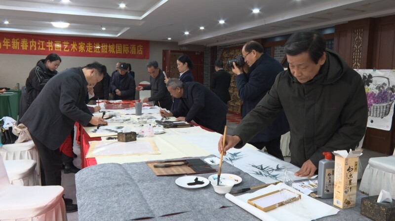 新春将至,翰墨传情。日前,由内江沱江书画艺术院主办的“马年新春送祝福”主题活动在甜城国际酒店拉开帷幕。内江十余位知名书画家通过现场创作书画作品、书写春..