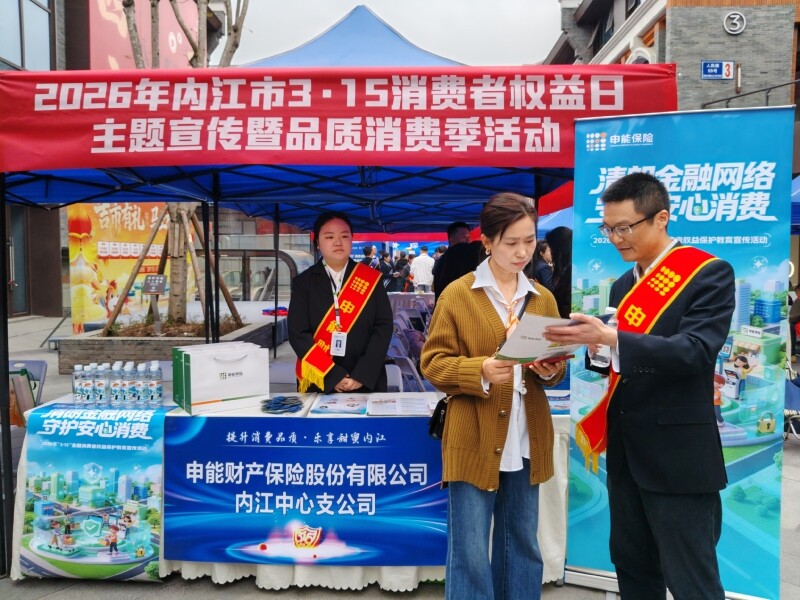 今天上午,“提升消费品质·乐享甜蜜内江”2026年内江市“3·15”消费者权益日主题宣传暨品质消费季活动在市中区四方块商圈举行。申能财产保险股份有限公..
