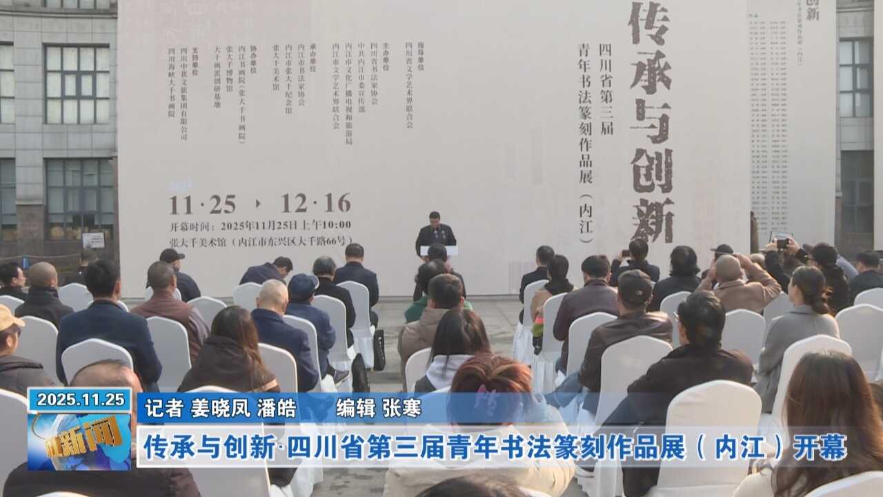11月25日上午,传承与创新·四川省第三届青年书法篆刻作品展(内江)在张大千美术馆开幕。市委常委、宣传部部长蒋学东宣布开幕,市政府副市长马炬致辞。开幕..