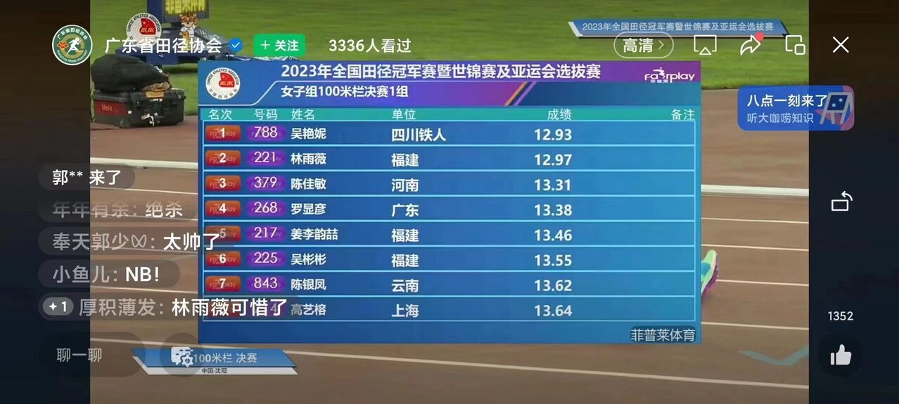 2023年全国田径大奖赛总决赛暨亚运会选拨赛女子100米栏冠军